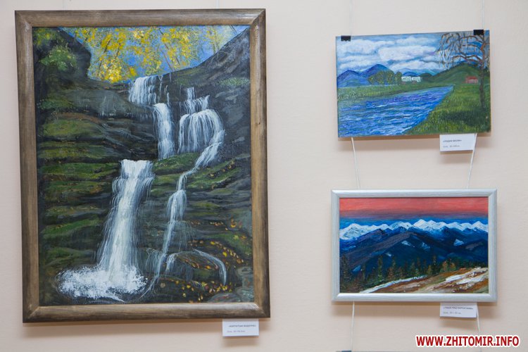 В експозиції представлені живописні твори у жанрі пейзажу та квіткові композиції, виконані олійними фарбами. Роботи створені під час гірських подорожей Карпатами, відпочинку на природі.