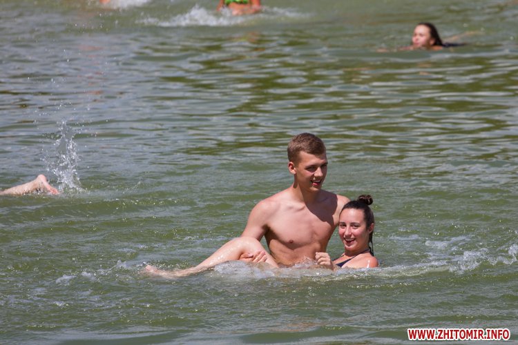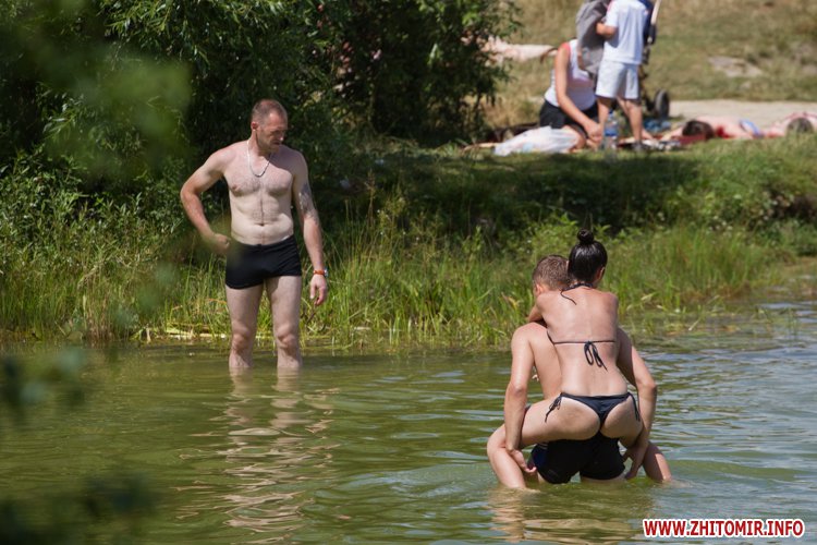 У Житомирі вже більше тижня тримається літня спека, на термометрах плюс 29-32 градусів. Городяни хто як може рятуються від пекучого сонця: хто в затінку, хто під кондиціонером, хто – купанням у річці чи кар’єрі.