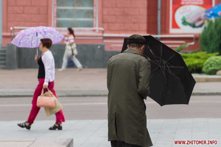 На зміну спекотній погоді 4 липня робочий тиждень у Житомирі розпочався з дощів та похолодання.