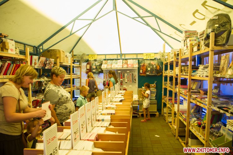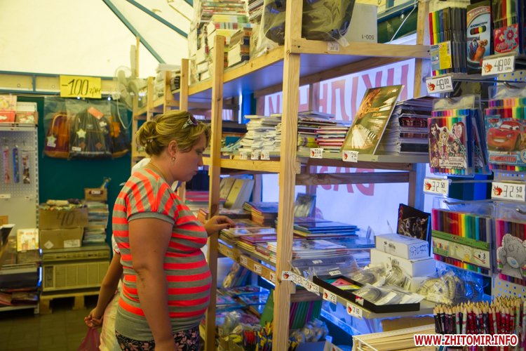 Житомиряни вже почали готувати своїх дітей до школи. 8 серпня, незважаючи на понеділок, на шкільних базарах вже є попит на канцелярію. А от купувати форму та взуття батьки поки не поспішають - деякі з них пояснюють, що чекають на розпродаж у перших числах вересня.
