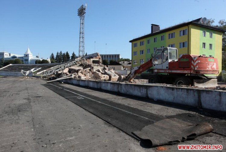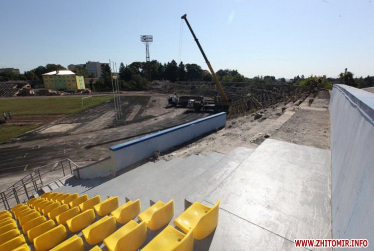 Як повідомляв Житомир.info, до кінця року запланований демонтаж східної трибуни стадіону «Полісся». Нещодавно стало відомо, що житомирській фірмі «АртХаус», яка вже кілька років займається реконструкцією стадіону, збираються доплатити за ремонт західної трибуни ще 8 млн 514 тис. грн.