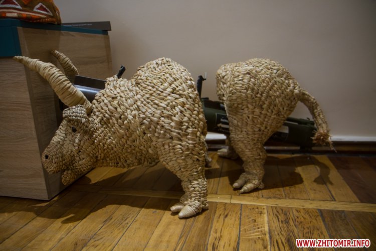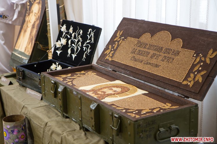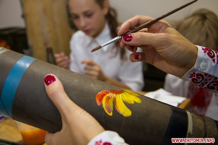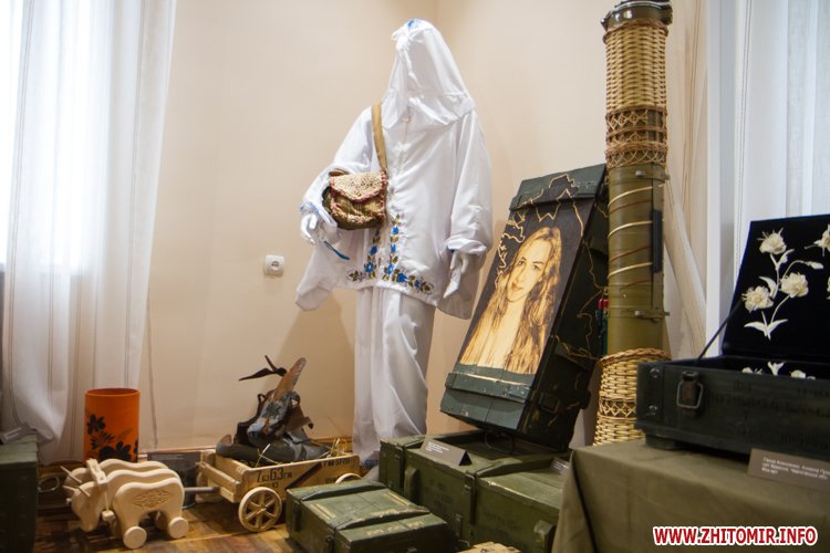 На виставці провели майстер-класи від Центру обласної творчості. Майстрині розповіли, що дуже хочуть, щоб зброя, набої, камуфляжна тканина не слугували більше війні, а були лише витворами мистецтва.