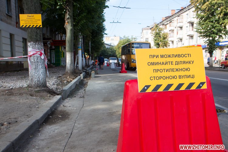 На улице Киевской в Житомире 17 августа продолжалась реконструкция тротуара, дошли до «Укртелекома»: