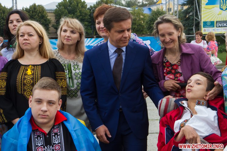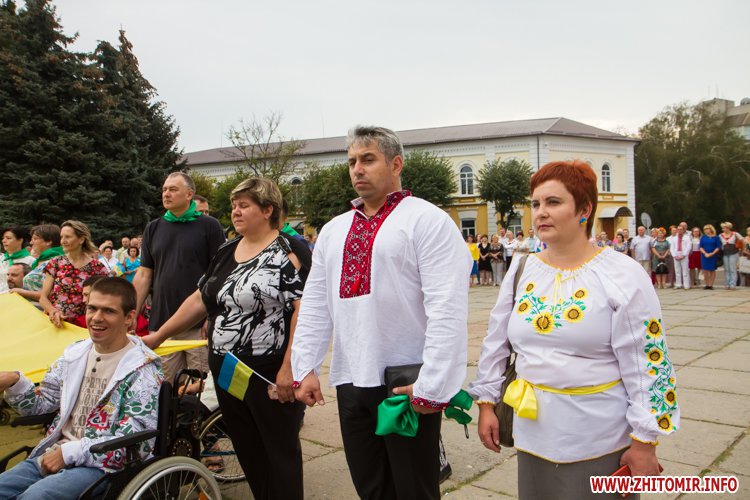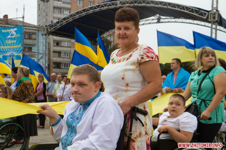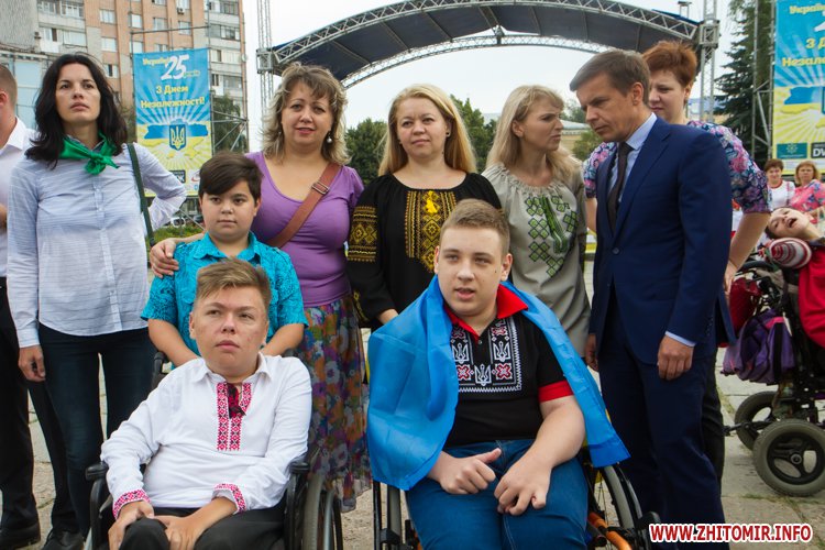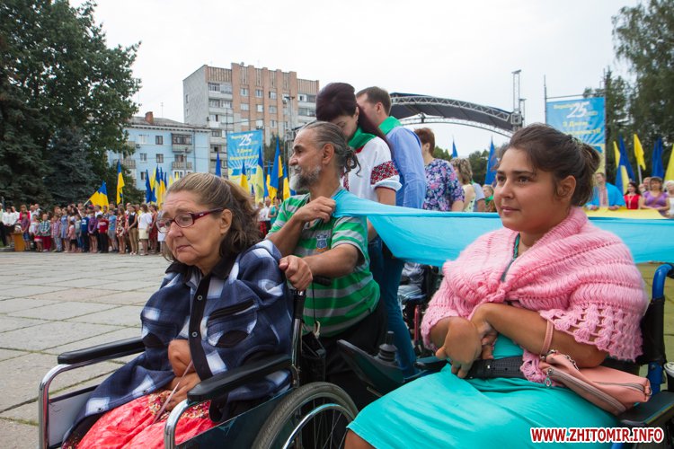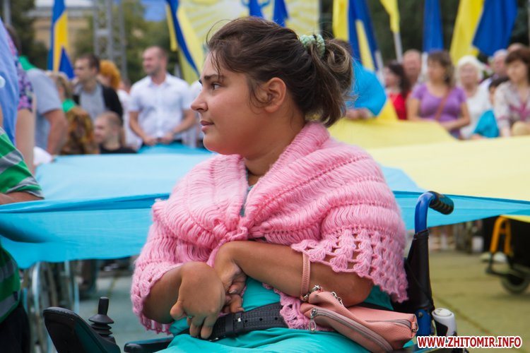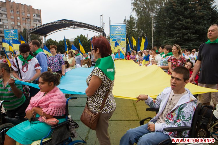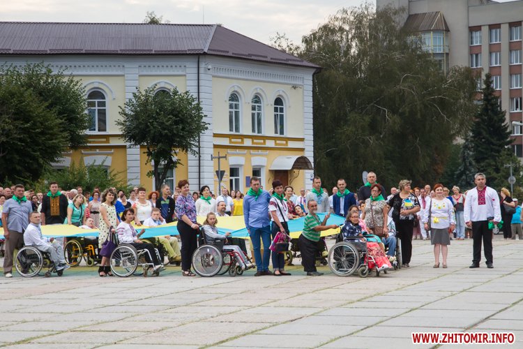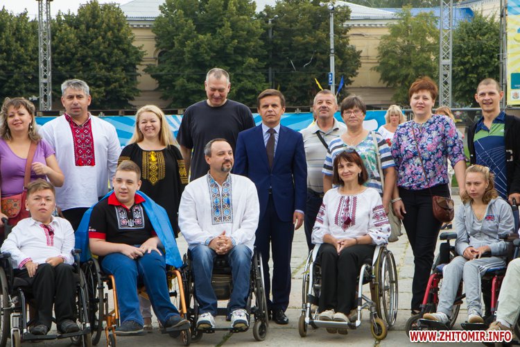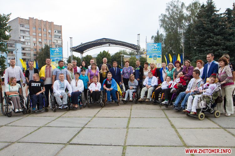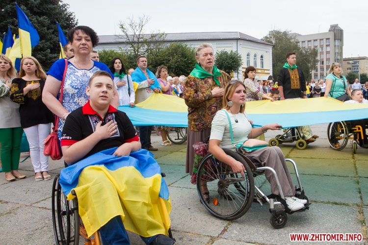 Ініціативна група «Об’єднання Самопоміч» 23 серпня з нагоди Дня прапора організувала в Житомирі флешмоб, щоб привернути увагу суспільства до людей з інвалідністю.