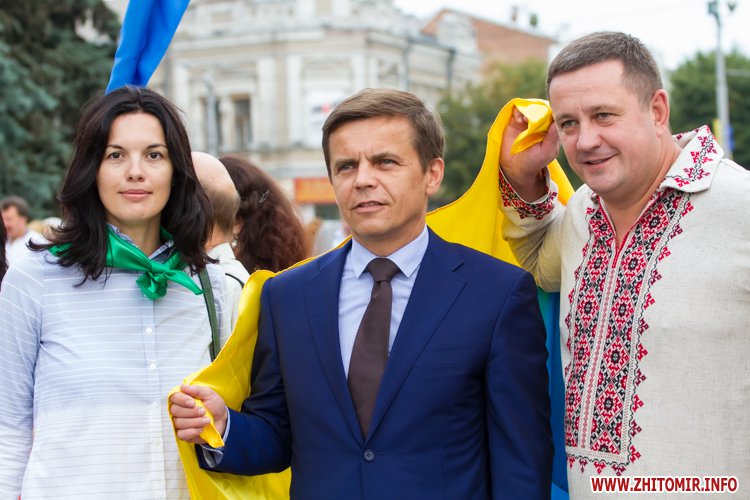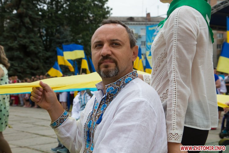 «Ми зробили такий флешмоб до Дня прапора з людьми з інвалідністю, які на візках і волонтерами ініціативної групи «Самопомочі». Ми розтягнули прапор і півтора квартали його везли цей прапор до майдану Корольова і там також його розтягнули. Ми не просто зробили такий флешмоб до Дня прапора, а зробили спеціально з людьми на візках для того, щоб наші люди звернули увагу на людей з обмеженими можливостями і зрозуміли, що вони такі самі, як і ми і їм треба просто допомагати з їхніми проблемами, а повірте, проблем там дуже багато. Ми збиралися біля драмтеатру і звідти їхали до майдану Корольова з розтягнутим прапором. Організатором виступила ініціативна група «Самопоміч». Участь у заході взяли 15 людей з інвалідністю та близько 20 волонтерів «Самопомочі», – розповів керівник ініціативної групи «Самопоміч» Станіслав Балакішієв.