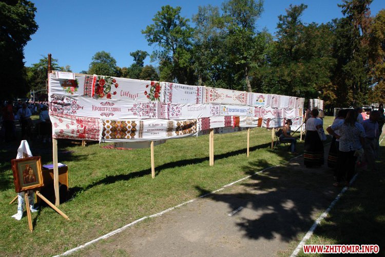 «Свято народної творчості проходило з метою збереження народних традицій, свят, звичаїв та обрядів, виявлення нових народних умільців, творчих аматорських колективів, майстрів традиційного та сучасного декоративно-прикладного мистецтва та налагодження творчих зв'язків між регіонами України і близького зарубіжжя у сфері культури та мистецтва. У святі взяли участь майстри народної творчості Андрушівського, Баранівського, Бердичівського, Хорошівського, Житомирського, Ємільчинського, Лугинського, Коростишівського, Малинського, Чуднівського, Попільнянського, Радомишльського районів, міст: Рівне, Луганськ, Донецьк, Новоград-Волинський, Житомира та Андрушівки. Основним акцентом виставки були вироби традиційної та художньої вишивки (рушники, серветки, доріжки, настільники, наволочки, сорочки, блузи, картини). Доповнювали виставку вироби художньої різьби по дереву, лялька-мотанка, соломоплетіння, декоративний розпис, лозоплетіння, гончарство, ковка по металу, вироби з коштовного та напівкоштовного каміння, з солоного тіста, полімерної глини, ткацтва, музичні інструменти та інше», – йдеться у повідомленні.