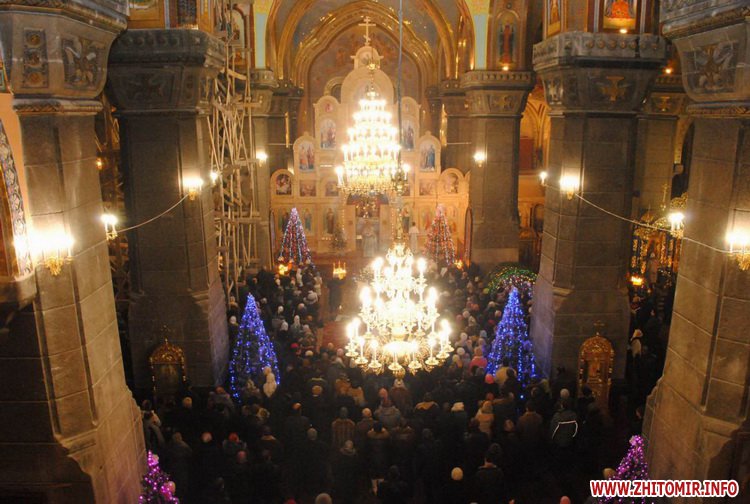 Сучасників вражали не тільки багате внутрішнє оздоблення храму (художнє настінне оформлення та ікони належать пензлю академіка М. Васильєва), а й, порівняно з масштабами тодішньої забудови нашого міста, його велетенські розміри (він розрахований на три тисячі богомольців). «Волынь» із захопленням писала: «Собор о пяти главах и шестой колокольни, пирамидальной формы, значительно возвышается над другими строениями. Колокольня так высока (28 сажен – 59,7 м), что в ясную погоду, говорят, виден Бердичев, отстоящий от Житомира в 47 верстах (50,4 км)».