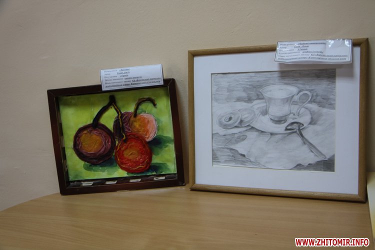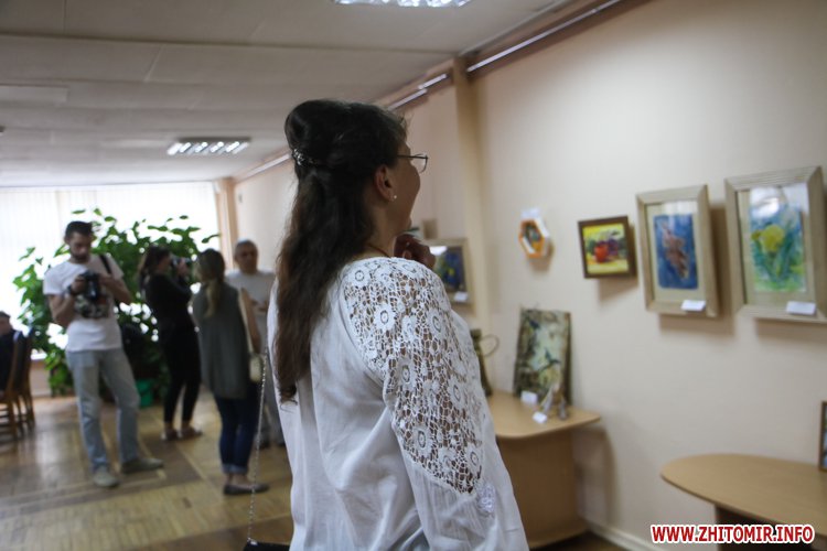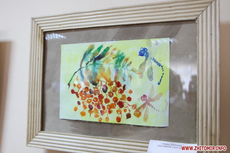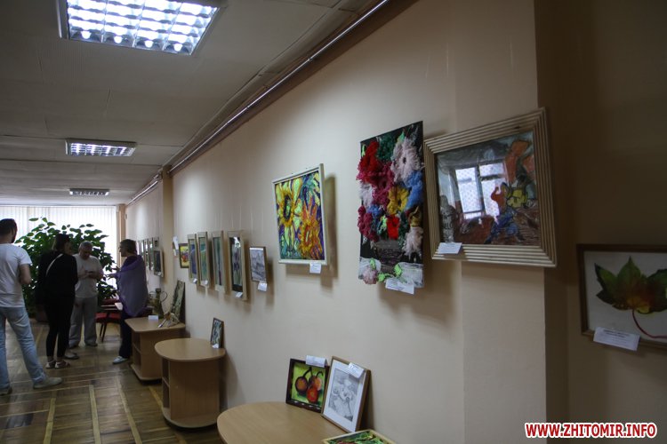 У своїх роботах діти використали не лише типові фарби, але й нитки, шматки журналів і навіть туалетний папір. Побачити виставку можна буде до 15 вересня у приміщенні Житомирської обласної універсальної наукової бібліотеки імені Олега Ольжича.