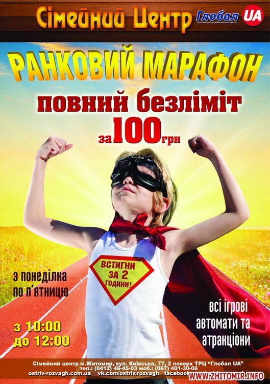 Для тих хто рано встає, мерщій до нас на «РАНКОВИЙ МАРАФОН», а саме з 10:00 до 12:00 дві години ПОВНОГО БЕЗЛІМІТУ на всі атракціони та ігрові автомати і ЦЕ ВСЕ ВСЬОГО за 100грн.
