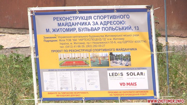 У Житомирі розпочали роботи з реставрації існуючого спортивного майданчика на Польському бульварі в районі Суриної Гори (колишній мікрорайон Малікова).