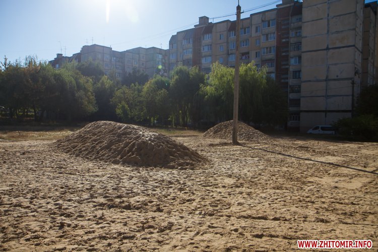14 вересня наш фотокореспондент побачила на майданчику декілька куп піску, частину якого вже розрівняли.