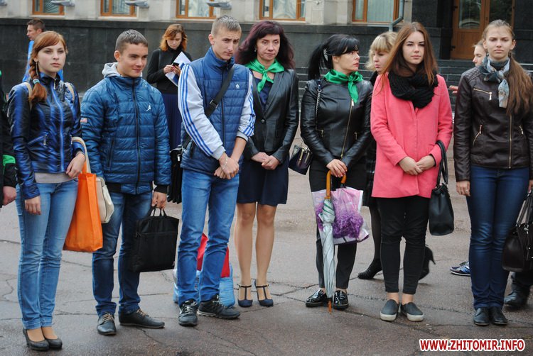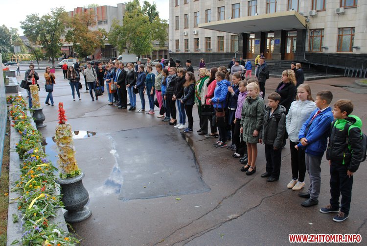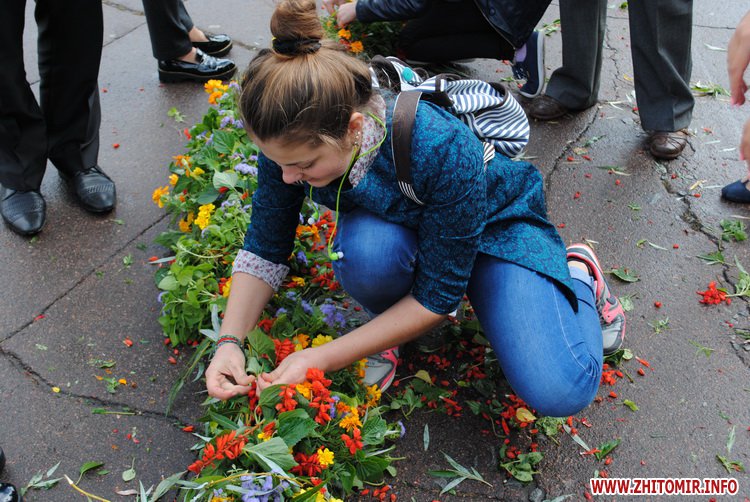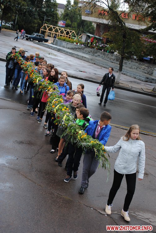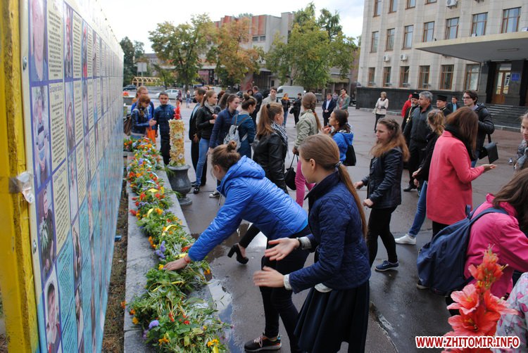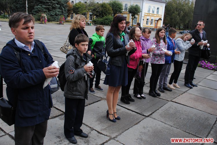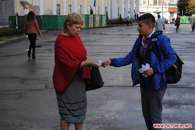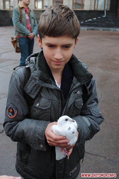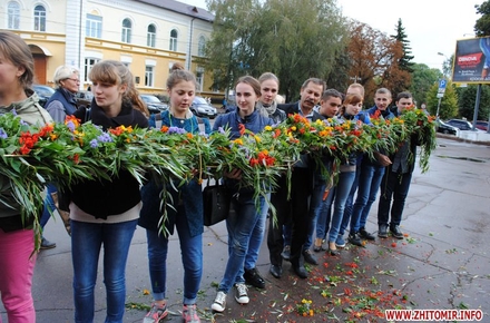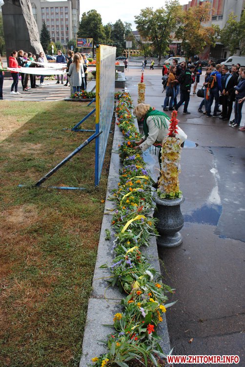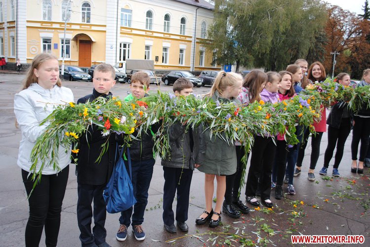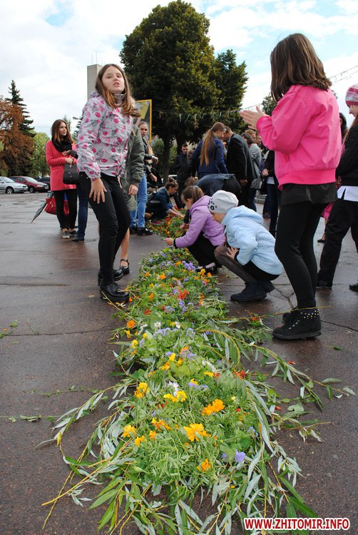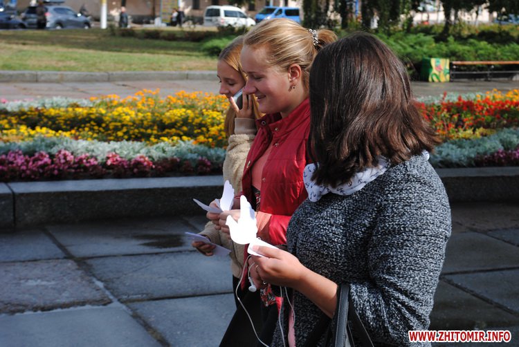 Під час заходу студенти Житомирського державного університету ім. І. Франка разом зі школярами сплели з осінніх квітів на гілок верби вінок. Молодші учні школи №12 роздавали житомирянам власноруч зроблених паперових голубів та вітали зі святом миру.
