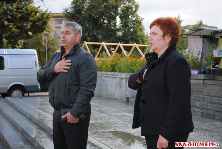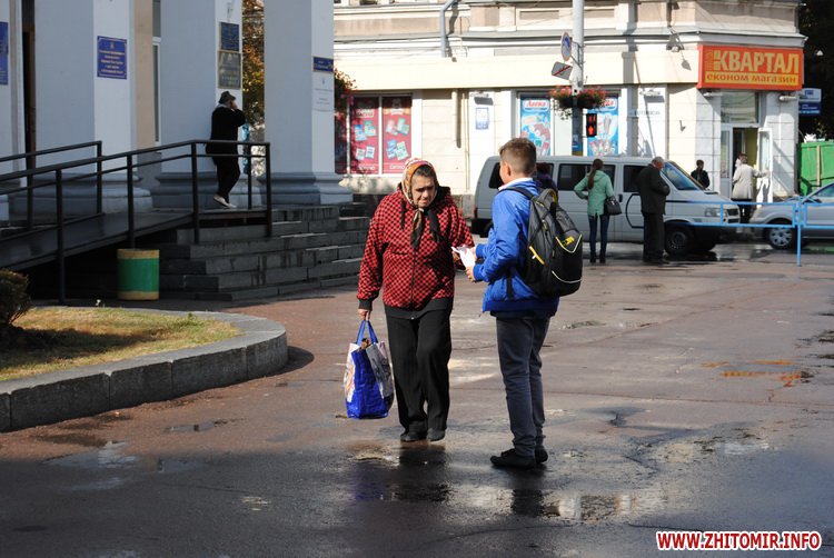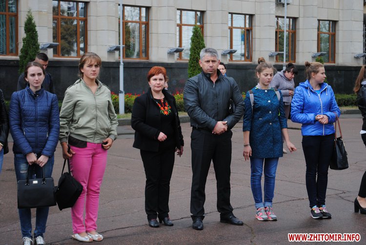 21 вересня у Житомирі біля приміщення кінотеатру «Жовтень» волонтери ініціативної групи «Об’єднання Самопоміч» разом зі студентами та школярами влаштували флешмоб «Житомир за мир».
