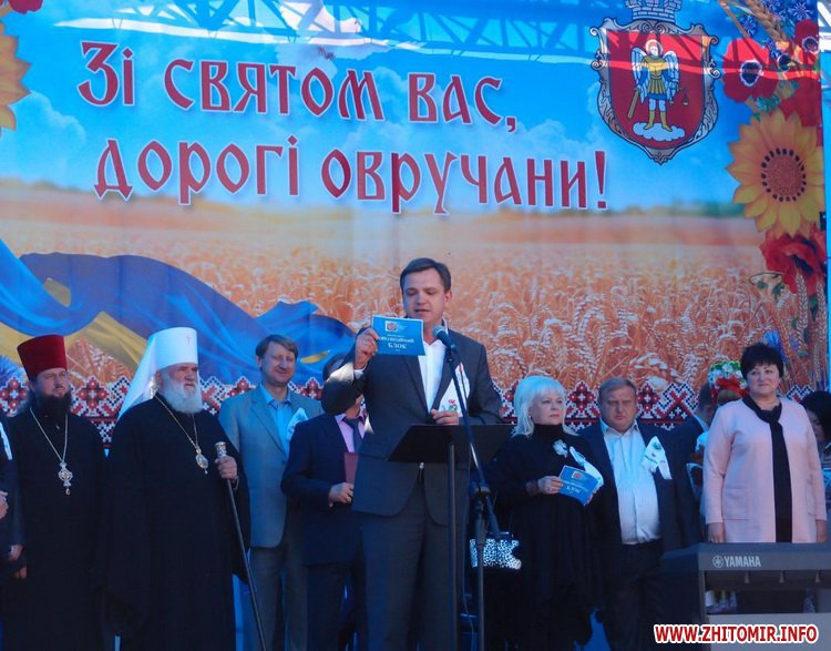 "Ми вітаємо древнє місто Овруч з Днем народження. Дуже мало міст у світі, які можуть пишатися такою славною історією, пишатися своїми людьми, котрі творили не тільки майбутнє України, вони творили і сьогоднішній світ. Фракція Опозиційного блоку в обласній раді прийняла рішення зробити чимало цінних подарунків для того, щоб життя кожного жителя міста стало кращим і щоб люди були здоровішими. Ми подарували медичне обладнання для Центральної районної лікарні, тому що для нас головним пріоритетом є життя і здоров'я наших громадян. Тим більше, що ця земля постраждала від Чорнобильської катастрофи. І крім того, для нас дуже важливою є підтримка материнства і дитинства, тому окрема наша допомога стосується саме найменших жителів міста. Без сумніву, забезпечення охорони здоровя кожної мами, кожної жінки цієї землі є дуже важливим. Ми бажаємо жителям Овруча жити довго і багато народжувати", - сказав Павленко.