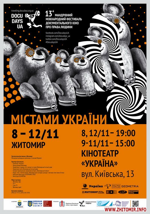 У Житомирі вже увосьме покажуть документальні фільми про права людини DocuDays UA. Із 8 по 12 листопада запрошуємо на перегляди чотирьох фільмів від закордонних режисерів та чотирьох фільмів - від українських.