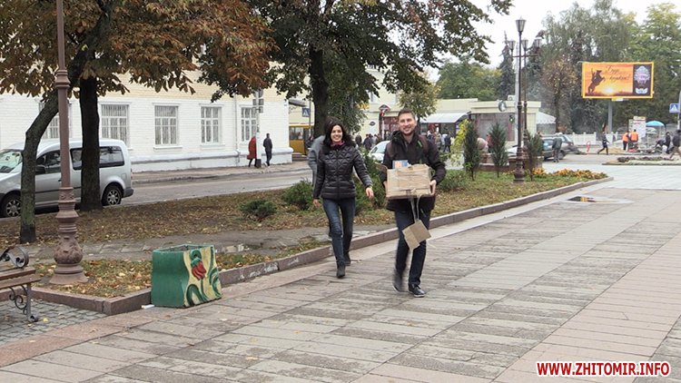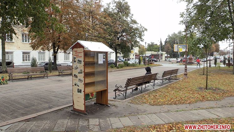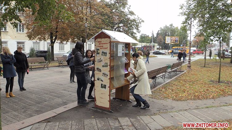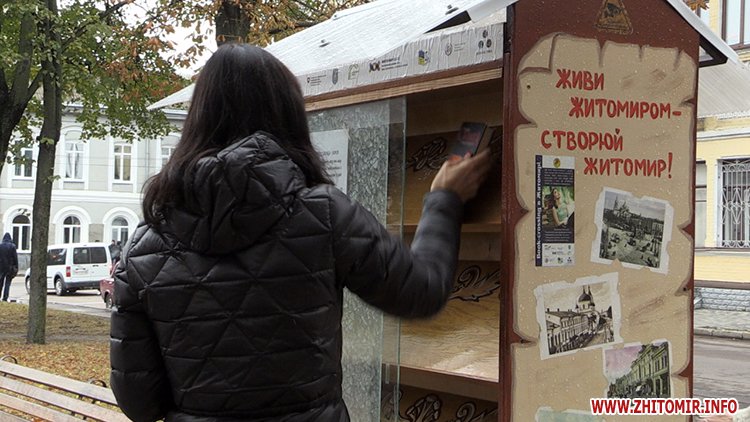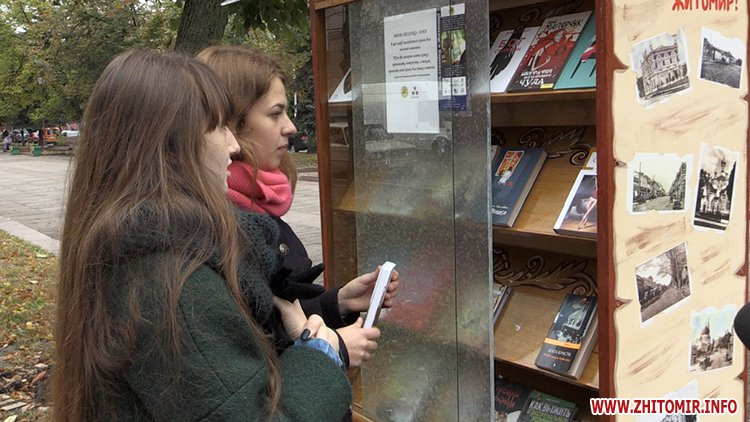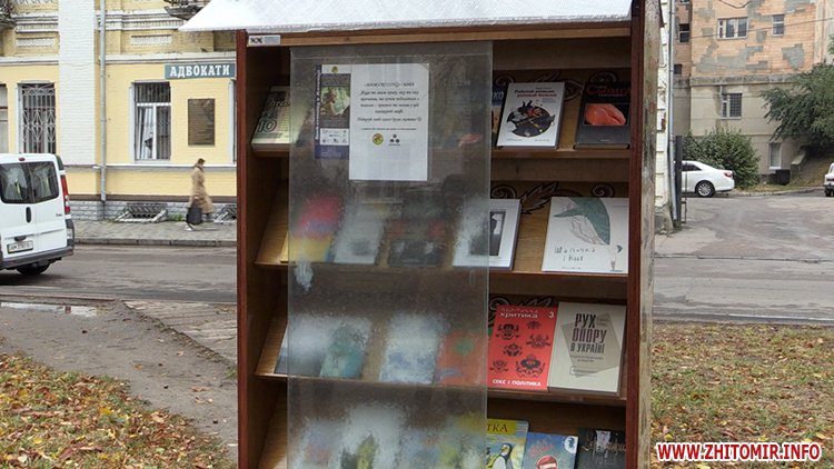 Вони приносять коробку з книжками, які розставляють на порожніх полицях шафи на Старому бульварі. Це вже третя спроба житомирян облаштувати буккросинг-зону. Популярну у світі тенденцію обміну книгами мешканці міста не зрозуміли. Після того, як організатори наповнювали книжкову шафу, за лічені години вона ставала порожньою. Ніна Семенівна вже не вперше обирає тут книги. Каже, щоразу повертає, але не збагне, куди вони зникають.