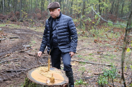 «Ми знайшли ці дуби вчора, тут явно працювала техніка лісгоспу АПК. Вочевидь, вони просто не встигли вивезти деревину. Поряд лише декілька проклеймованих пеньків – це зроблено постфактум, аби хоч якось замести сліди», - зазначає Володимир Арешонков.