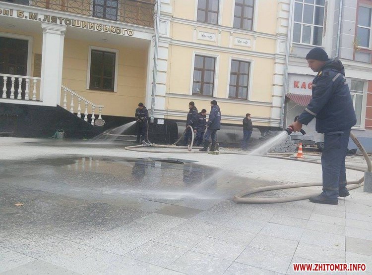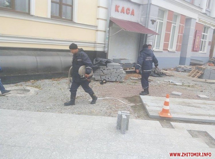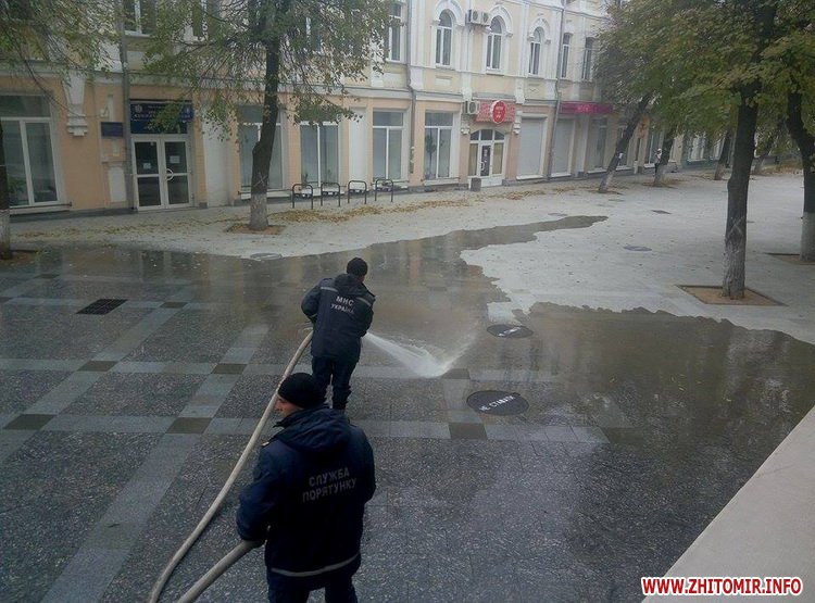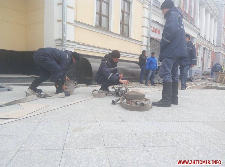 Виявилось, що міська влада попросила допомоги у рятувальників – хочуть помити нову гранітну плитки і відкрити частину реконструйованої вулиці.
