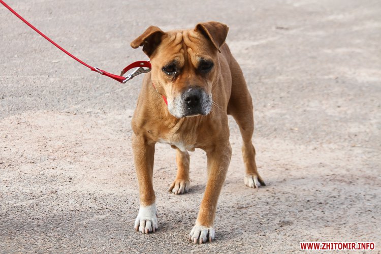 Англійський стафорширдський тер’єр похилого віку зі спокійним характером. Буде ідеальною компаньйонкою для людини похилого віку: