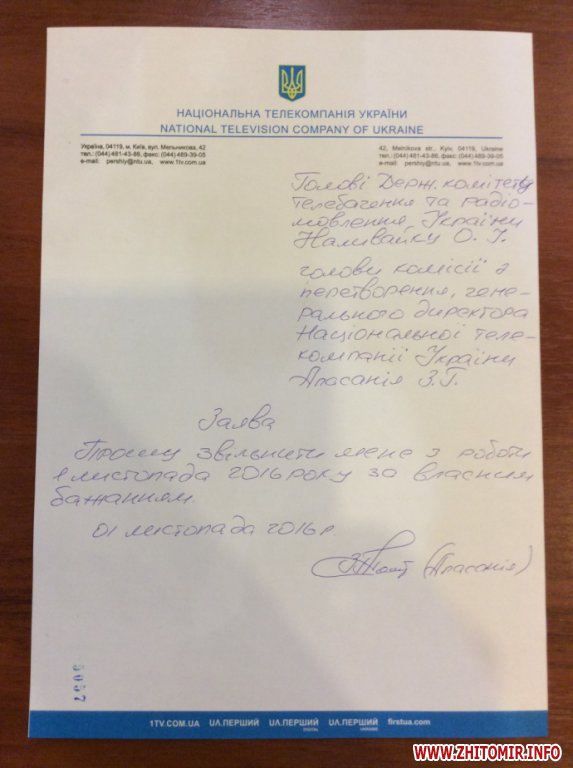 Причинами свого рішення він називає урізання в бюджеті НТКУ коштів, призначених на розвиток суспільного мовлення в Україні.