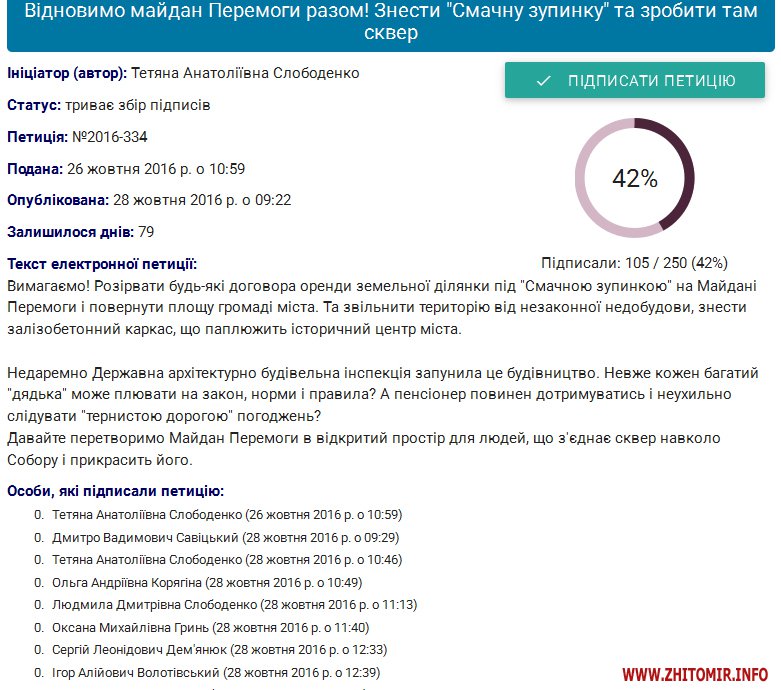 Станом на ранок 7 листопада під петицією вже є 105 підписів з 250 необхідних.