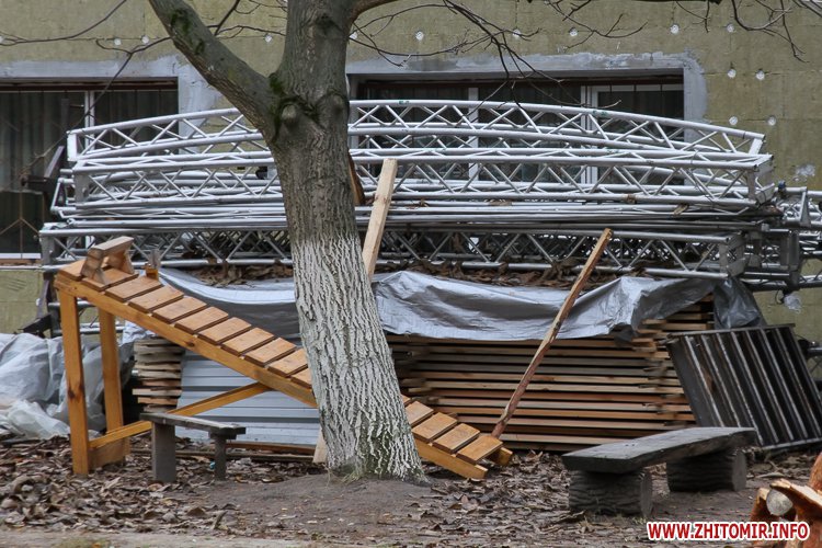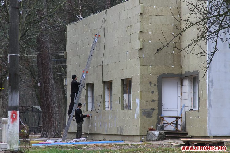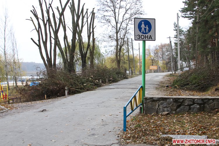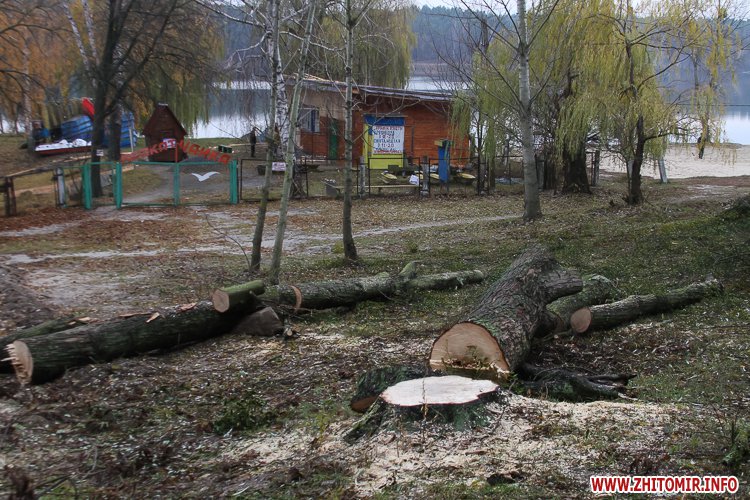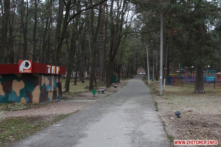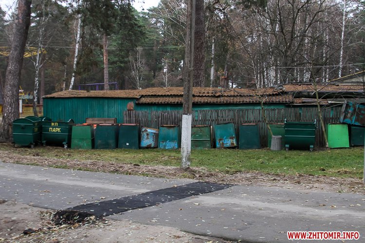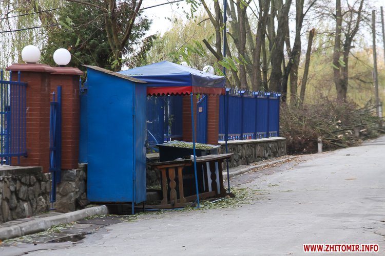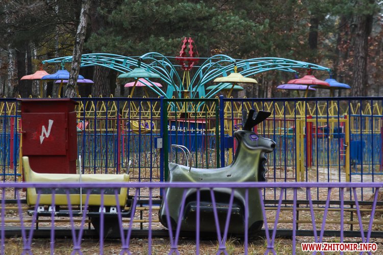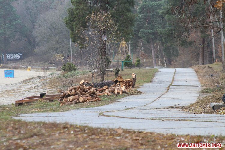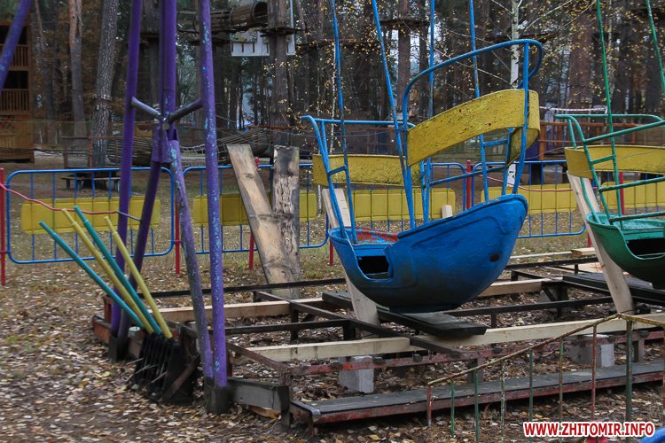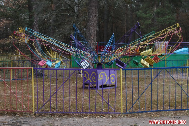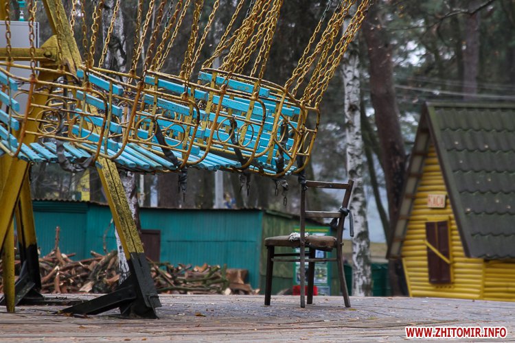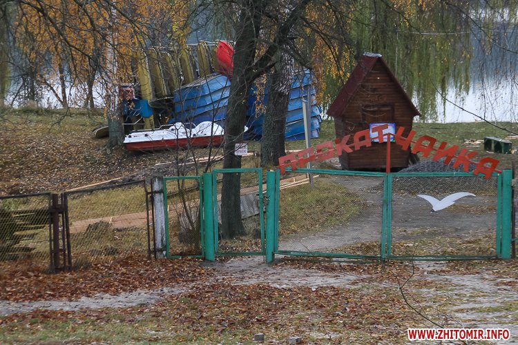 Черговий сезон у житомирському гідропарку завершився. 8 листопада комунальники наводять лад у парку та утеплюють адмінбудівлю, на гойдалках висять замки, а територія парку завалена зрізаними деревами та гіллям.