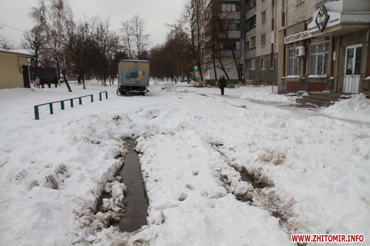 Як повідомляв Житомир.info, заступник мера Олександр Фещенко на ранковому брифінгу 14 листопада обіцяв, що після розчистки мостів та шляхопроводів почнеться більш інтенсивна робота на прилеглих до центральних та другорядних вулицях. Він також говорив, що власники приватних магазинів, установ та підприємств повинні належним чином доглядати за прилеглою територією.