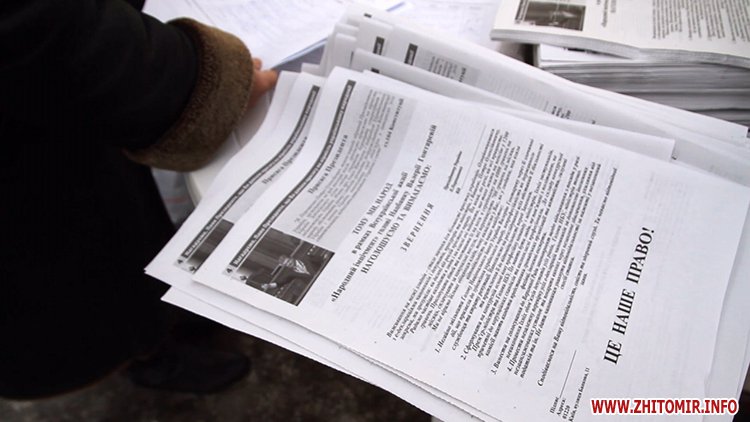 «Ця акція – всеукраїнська, тобто в кожній області будуть писать ось такі листи. І ми найкращі листи будемо передавать в Адміністрацію (президента) і будем обклеювать фасад Адміністрації, щоб президент і його оточуючи бачили всю цю думку громади Житомира. І найкращі «перли» від Житомира будуть поклеєні у Верховній Раді на трибуні», - пояснив Блощинський.