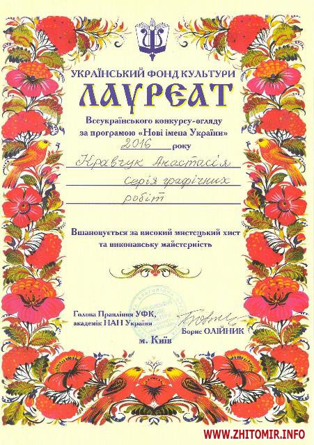 У Києві відбувся XXIX Всеукраїнський огляд-конкурс за програмою Українського фонду культури «Нові імена України – 2016», лауреатами якого стали юні таланти з Житомирської області.