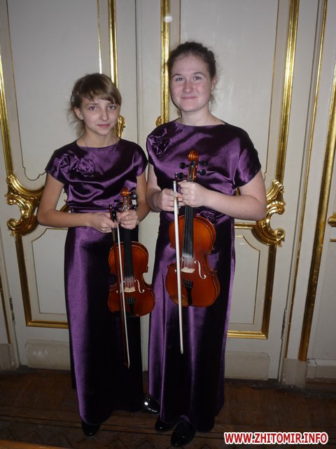 Дует скрипалів Бердичівської музичної школи у складі: Федун Анни, 2003 р.н., Лясковець Марії, 2003 р.н., викладач Марців І.М.