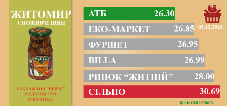 АТБ, пр. Миру, 15 А, Ринок "Житній", майдан Житній ринок, Billa, пр. Миру, 15, Фуршет, вул. Вітрука, 9 а,  Сільпо, майдан Житній ринок,1,ЕКО-маркет, вул. Мала Бердичівська, 2/7.