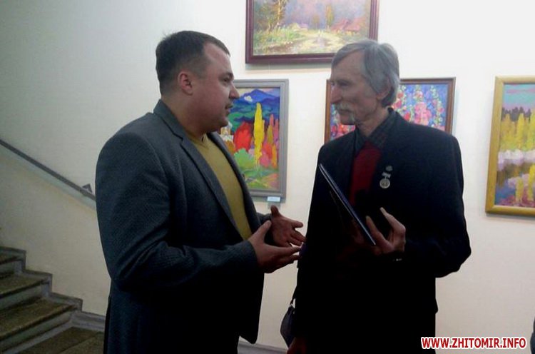 Довідково: Василь Іванович Кондратюк – Заслужений художник України, член Національної спілки художників України, голова Житомирської обласної організації національної спілки художників України. Автор герба м. Житомира, автор-розробник нагороди Житомирської обласної ради «Честь і слава Житомирщини», автор ілюстрацій літературних творів Житомирських письменників, лауреат премій ім. Л. Українки та «Смарагдова ліра» Державної прикордонної служби, лауреат премії «Міжнародної художньої виставки пейзажу» ім. А.Куїнджі та ін.