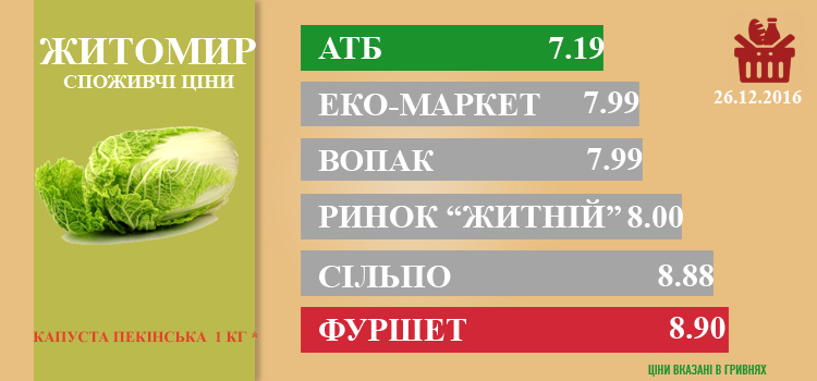 АТБ, пр. Миру, 15 А, Ринок "Житній", майдан Житній ринок, Фуршет, вул. Вітрука, 9 а, ЕКО-маркет, вул. Мала Бердичівська, 2/7, Квартал, вул. Вітрука, 13, Вопак, вул. Київська, 87.