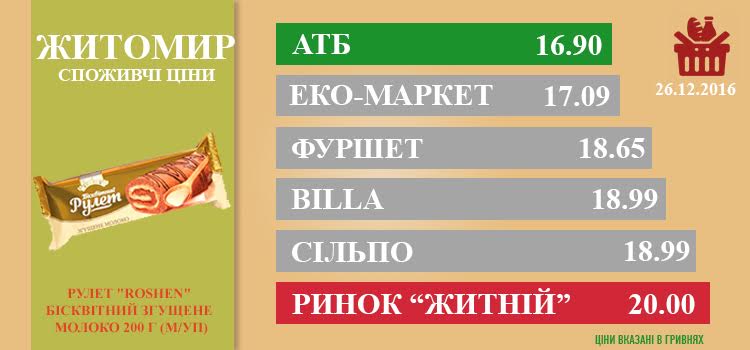 Ціни в Житомирі за 29.12.2016