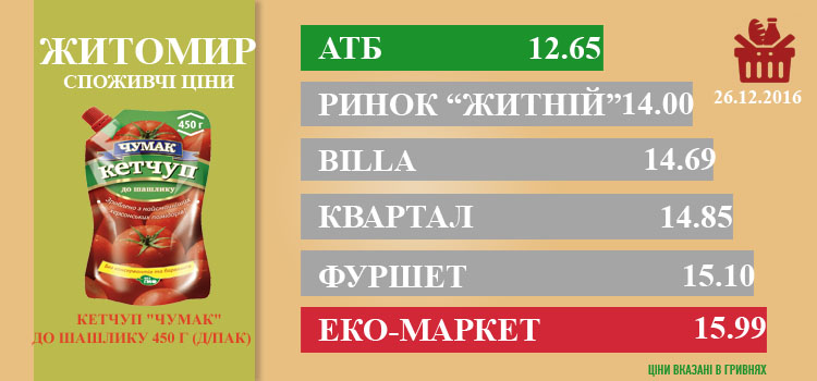 Моніторинг здійснено на основі інформації, отриманої за методом контрольної закупки 28.11.2025 р. у місцях продажу: АТБ, пр. Миру, 15а, Фора, вул. Київська, 106, Метро, вул. Ватутіна, 55в, Сільпо, вул. Житній ринок, 1