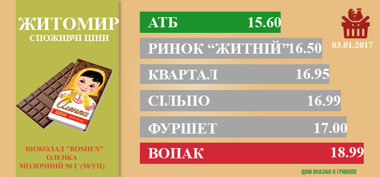 АТБ, пр. Миру, 15 А, Ринок "Житній", майдан Житній ринок, Фуршет, вул. Вітрука, 9 а,Вопак, вул. Київська, 87, Сільпо, майдан Житній ринок 1 ,Квартал, вул. Вітрука, 13.