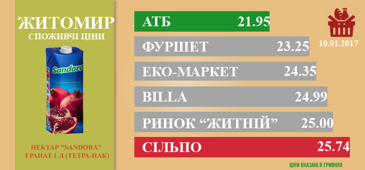 АТБ, пр. Миру, 15 А, Ринок "Житній", майдан Житній ринок, Фуршет, вул. Вітрука, 9 а,Сільпо, майдан Житній ринок, 1, Billa, пр. Миру, 15, ЕКО-маркет, вул. Мала Бердичівська, 2/7.