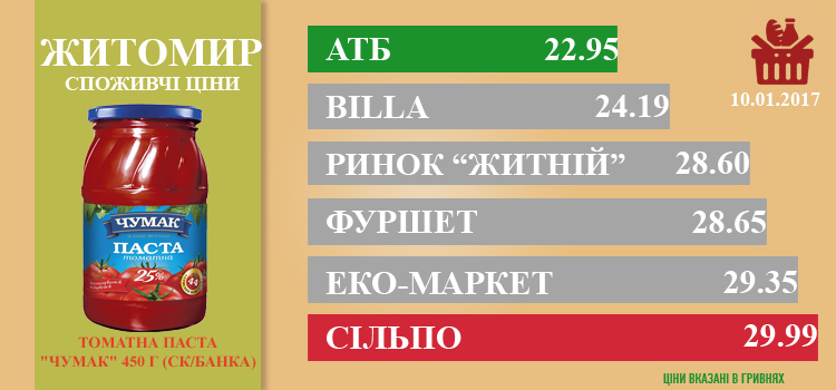 АТБ, пр. Миру, 15 А, Ринок "Житній", майдан Житній ринок, Фуршет, вул. Вітрука, 9 а,Сільпо, майдан Житній ринок, 1, Billa, пр. Миру, 15, ЕКО-маркет, вул. Мала Бердичівська, 2/7.