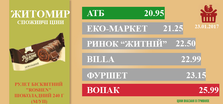 Ціни в Житомирі за 24.01.2017