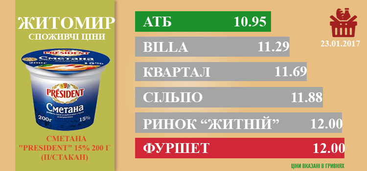 АТБ, пр. Миру, 15 А, Ринок "Житній", майдан Житній ринок, Billa, пр. Миру, 15, Сільпо, майдан Житній ринок, 1,  Фуршет, вул. Вітрука, 9 а, Квартал, вул. Вітрука, 13.
