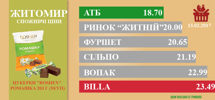 Ціни в Житомирі за 16.02.2017