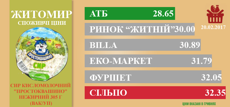 АТБ, пр. Миру, 15 А, Ринок "Житній", майдан Житній ринок, Фуршет, вул. Вітрука, 9 а, ЕКО-маркет, вул. Мала Бердичівська, 2/7,Сільпо, майдан Житній ринок, 1. Billa, пр. Миру, 15.