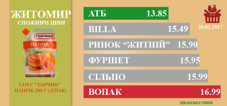 Ціни в Житомирі за 23.02.2017