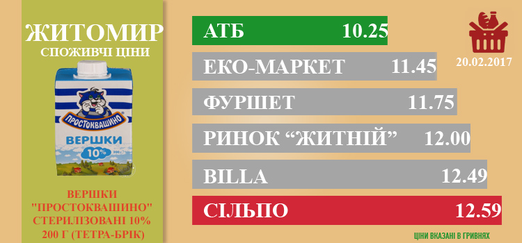 АТБ, пр. Миру, 15 А, Ринок "Житній", майдан Житній ринок, Сільпо, майдан Житній ринок, 1. Billa, пр. Миру, 15, ЕКО-маркет, вул. Мала Бердичівська, 2/7, Фуршет, вул. Вітрука, 9 а.