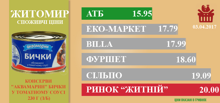 AТБ, пр. Миру, 15 А, Ринок "Житній", майдан Житній ринок, ,Сільпо, майдан Житній ринок, 1, Фуршет,  вул. Вітрука, 9а,  Billa, пр. Миру, 15, ЕКО-маркет, вул. Мала Бердичівська, 2/7.