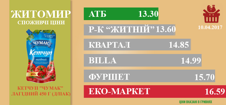 AТБ, пр. Миру, 15 А, Ринок "Житній", майдан Житній ринок, Фуршет,  вул. Вітрука, 9а,  Billa, пр. Миру, 15, Квартал, вул. Вітрука,13, ЕКО-маркет, вул. Мала Бердичівська, 2/7.
