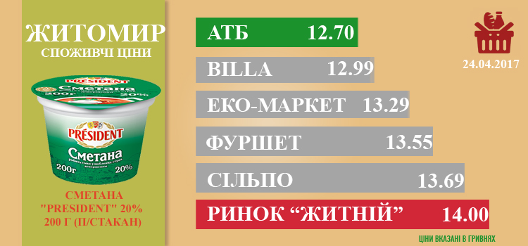 AТБ, пр. Миру, 15 А, Ринок "Житній", майдан Житній ринок,  Billa, пр. Миру, 15,  Сільпо, майдан Житній ринок, 1, ЕКО-маркет, вул. Мала Бердичівська, 2/7, Фуршет, вул. Вітрука, 9 а