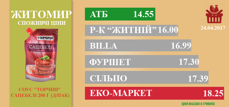 AТБ, пр. Миру, 15 А, Ринок "Житній", майдан Житній ринок,  Billa, пр. Миру, 15,  Сільпо, майдан Житній ринок, 1, ЕКО-маркет, вул. Мала Бердичівська, 2/7, Фуршет, вул. Вітрука, 9 а.