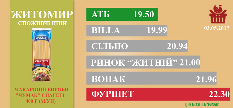 AТБ, пр. Миру, 15 А, Ринок "Житній", майдан Житній ринок,  Billa, пр. Миру, 15,  Фуршет, вул. Вітрука, 9 а, Сільпо, майдан Житній ринок, 1, Вопак, вул. Київська, 87.