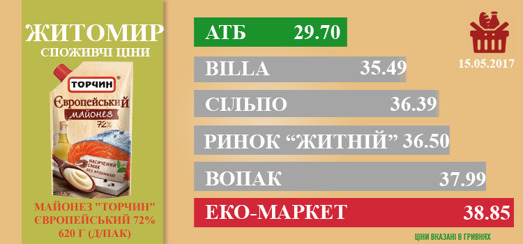 Ціни в Житомирі за 18.05.2017